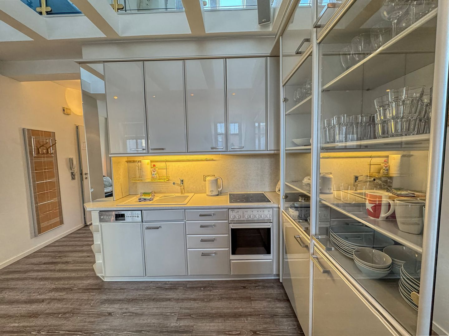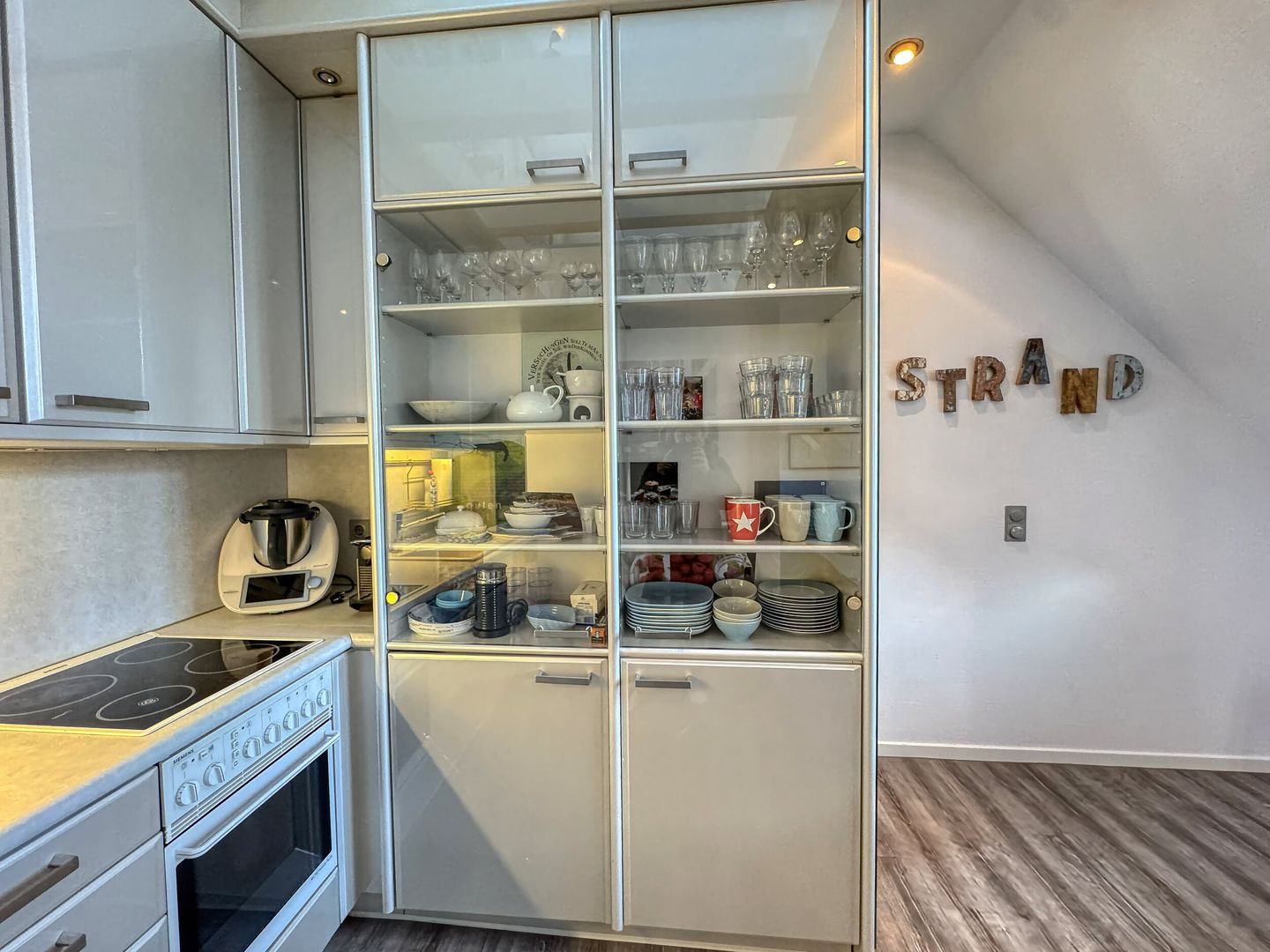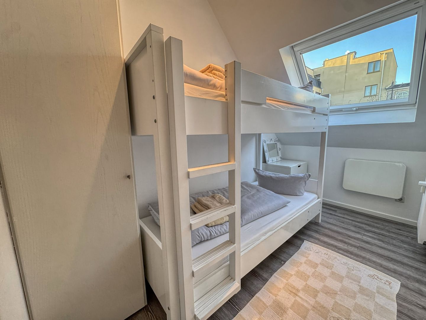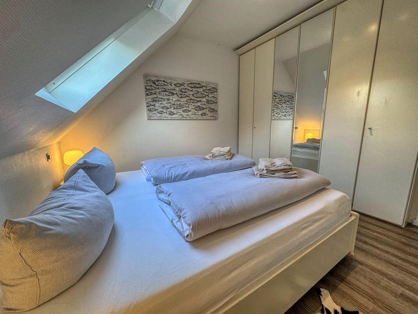 das Appartement im 2. OG verfügt über ein Schlafzimmer mit Doppelbett und eines mit Etagenbett (90*200). Badezimmer mit Dusche/WC. In der geräumigen Wohnküche befindet sich die Essecke und auch ein Sofa. Vom Thermomix bis zur Nespressomaschine ist alles vorhanden.