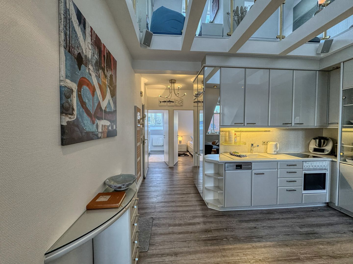 Den TV-Bereich in der offenen Galerie erreichen Sie über eine Raumspartreppe.